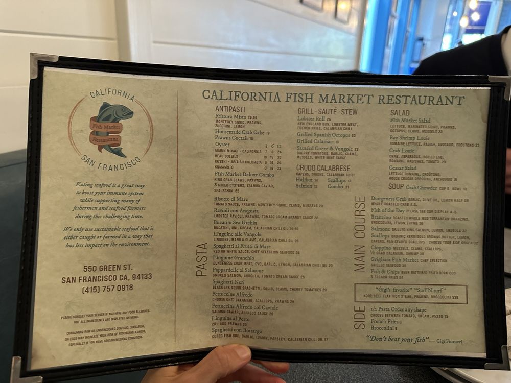 Welcome to the California Fish Market Restaurant, where the flavors of the ocean meet the elegance of Italian cuisine. Nestled in the heart of San Francisco, this vibrant eatery specializes in delectable seafood dishes that are as fresh as they are flavorful.